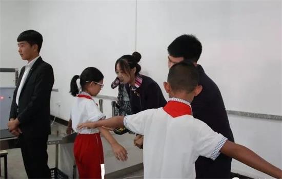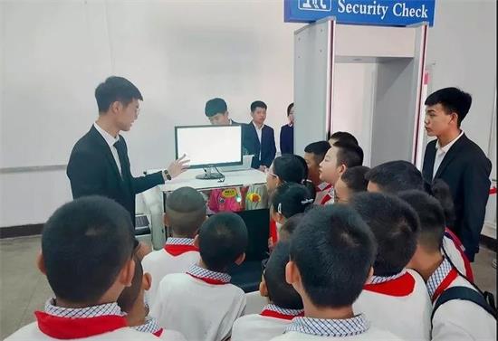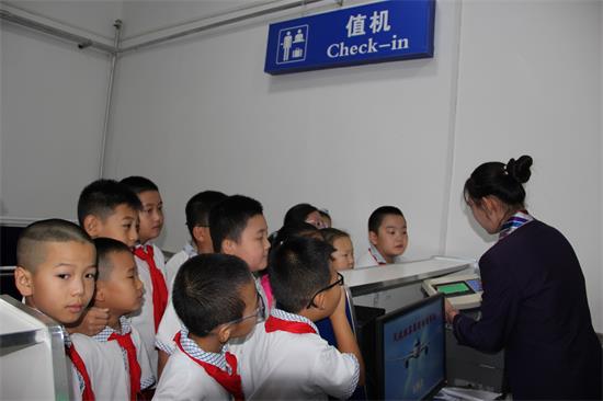 其次,在仿真机场中,队员们从售票、值机、安全检查等等乘坐民用航班时的诸多步骤,了解到了一些关于机场与飞机的安全小知识。
