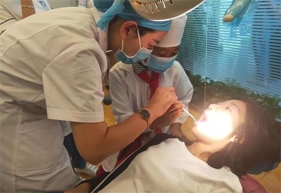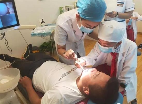 在医生阿姨的专业引导下,队员和家长轮流检查对方的牙齿,龋齿、牙结石、牙斑在牙科专业器械下看到直观、清楚,大家也从中意识到了口腔健康的重要性。